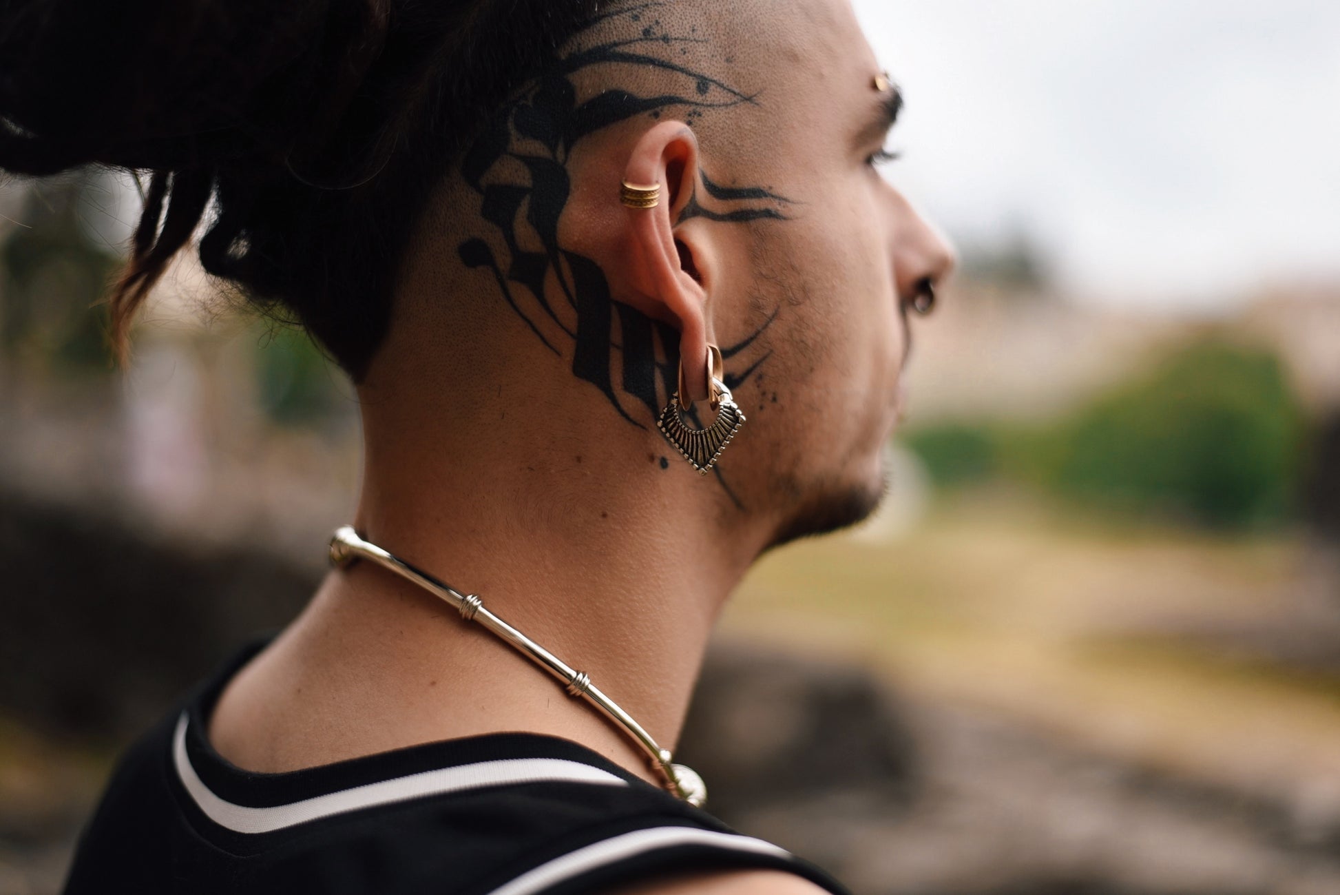 - A quiet tribute to beginnings, crafted in warm brass for stretched lobes.